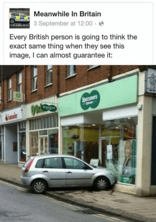 For the unaware, Specsavers opticians built their brand for years around ads where someone has an embarrassing, inconvenient or painful moment because they couldn’t see properly (like this delivery driver), followed up with the iconic “should have gone to Specsavers” slogan. When a car crashed into their shop, it was shared far and wide by the general public. Other examples are easy to find and it’s always Specsavers who are referenced.